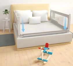 Cu un singur buton ajustați bariera la înălțimea saltelei (interval 0–31 cm), astfel încât să se așeze ferm și sigur, fără spații.