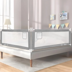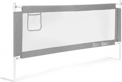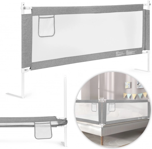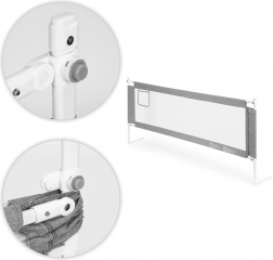 Barieră de pat practică cu lățimea de 200 cm, care asigură copiilor un somn în siguranță și părinților liniște. Are montaj universal, înălțime reglabilă pentru diferite saltele, mâner superior rabatabil pentru acces ușor și plasă rezistentă pentru o mai bună circulație a aerului. Construcție din oțel și țesătură durabilă, plus buzunar practic pentru mărunțișuri. Marcă ECOTOYS.