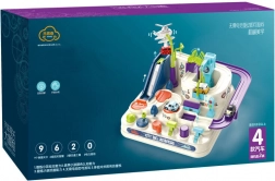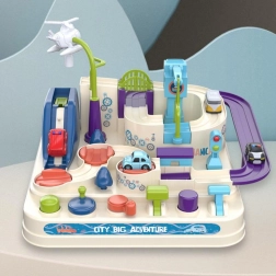 Setul include o pistă de obstacole colorată cu un design atent, care asigură distracție maximă și stimulează imaginația copilului. Cu cele patru mașinuțe, copilul poate depăși diverse obstacole precum tobogane sau poduri. Utilizarea butoanelor speciale și a comenzilor plasate pe panou contribuie la dezvoltarea gândirii logice și a abilităților motorii.
