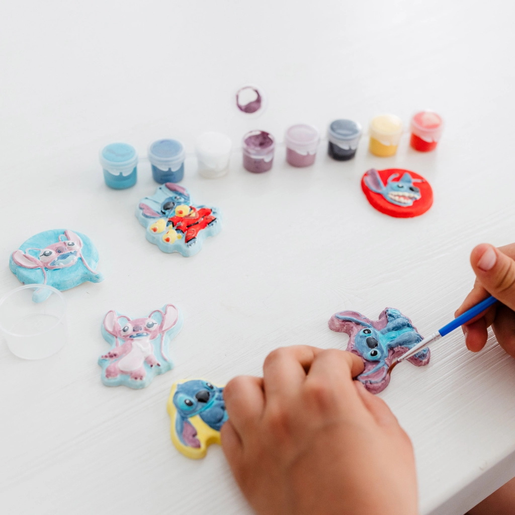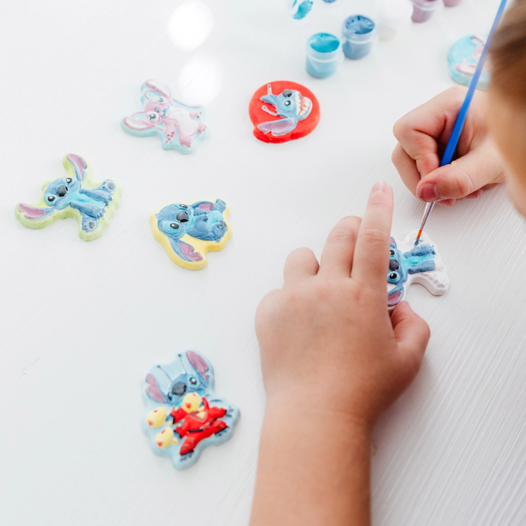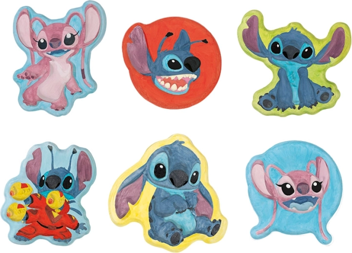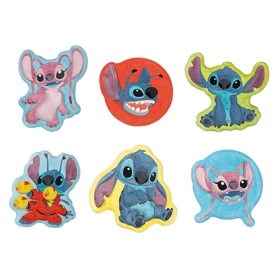 Nu uita să îți dezvolți latura artistică și să pictezi propria ta figurină din ghips cu Stitch și Angel.