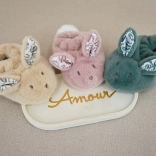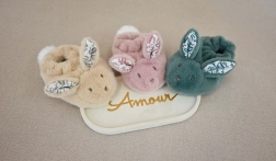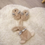 Oferiți copilului dumneavoastră sentimentul de liniște și siguranță cu acest set care conține nu doar un iepuraș de pluș cu fundiță elegantă, dar și botoșei cu imprimeu de urechi de iepure și față brodată.