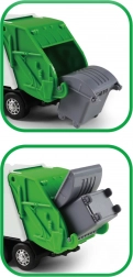 Copiii vor adora această mașină de gunoi atent lucrată, ideală pentru un joc realist. Vehiculul este echipat cu uși rabatabile în partea din spate a platformei pentru descărcarea ușoară a gunoiului și vine cu un container practic care poate fi deschis. Datorită mecanismului de mers înapoi, mașina se mișcă ușor și adaugă distracție jocului.