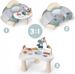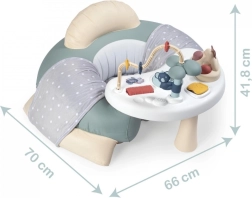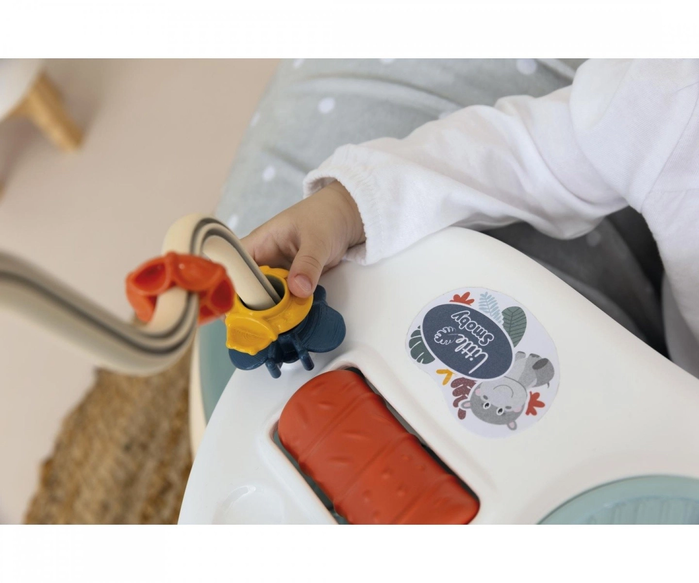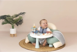 Scăunelul interactiv LITTLE SMOBY este un „prim fotoliu” confortabil și ergonomic, care susține exersarea șederii independente și oferă totodată activități distractive pentru dezvoltarea timpurie a abilităților. Șezutul cu husă textilă este plăcut la atingere și ușor de întreținut, iar construcția stabilă și moale asigură confort și siguranță în timpul jocului și al hrănirii.