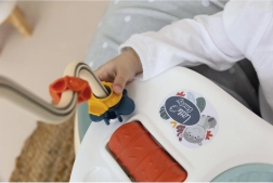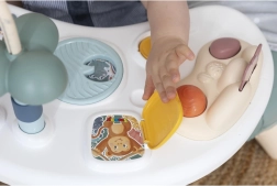 Măsuța detașabilă, pe trei picioare, oferă stimulări senzoriale variate: joc cu cangur ascuns, koala rotativă pe palmier, oglinjoară sigură și traseu cu mărgele. Aceste activități dezvoltă motricitatea fină, concentrarea și coordonarea mână–ochi, menținând în același timp bebelușul implicat și mulțumit.