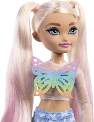 Păpușa Barbie „Malibu” din colecția Dream Besties aduce în joc un stil proaspăt și bucuria mișcării. În ținuta cu fluturași, cu genunchiere și patine cu patru roți bleu deschis, este pregătită pentru o plimbare grozavă. Părul lung, prins în două cozi cu efect ombré roz, invită la coafat și stilizat.