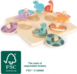 Descoperă puzzle-ul de memorie din lemn cu dinozauri, realizat din lemn 100% certificat FSC. Setul combină puzzle tip încastrare și joc de memorie într-unul singur: sub ouăle colorate de dinozaur ascunzi figurinele de dinozaur corespunzătoare. Datorită mânere lor din lemn, piesele sunt ușor de prins chiar și pentru cei mai mici, iar jocul dezvoltă în mod natural motricitatea fină, coordonarea mână–ochi, răbdarea, concentrarea și percepția culorilor și a formelor.