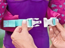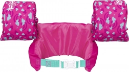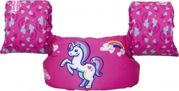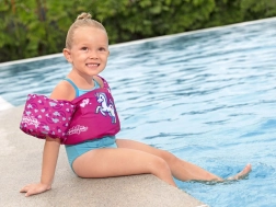 Aripioarele sunt unite cu piesa de la piept, ceea ce ajută la menținerea brațelor la suprafață și construiește încrederea micilor înotători. Datorită croielii universale, stă confortabil și nu limitează mișcarea în timpul stropitului, zbenguielii sau al primelor încercări de înot.