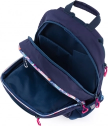 Rucsacul pentru studenți OXY Sport Flori Albastre este alegerea perfectă pentru școală și timp liber. Spatele modelat ergonomic și bretelele de umăr căptușite asigură un purtat confortabil chiar și în cazul unei încărcări mai mari. Rucsacul are două compartimente principale cu fermoare rezistente, un buzunar frontal pentru lucruri mici și un buzunar întărit pentru laptop. Buzunarele ascunse și carabiniera pentru chei adaugă la practicitate.