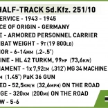 Setul de construcție Half-Track Sd.Kfz. 251 oferă o experiență autentică de asamblare și joacă. Datorită imprimărilor detaliate, roților mobile cu anvelope din cauciuc și șenilelor realiste, modelul se comportă ca un vehicul real. Ușile spate rabatabile și numeroasele accesorii sprijină scenarii creative.
