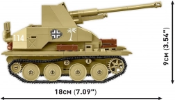 Acest model detaliat Sd.Kfz. 139 Marder III este bazat pe șasiul Panzer 38(t) și îi va impresiona atât pe pasionații de istorie, cât și pe cei ai seturilor de construcție. Datorită execuției precise la scara 1:35 și imprimărilor durabile, fără autocolante, obții un aspect realist și rezistență în timpul jocului. Nu lipsesc șenilele funcționale, roțile pivotante, spațiul pentru o figurină în compartimentul de luptă și tunul mobil, care intensifică plăcerea construcției și a expunerii.