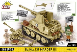 Setul de construcție Sd.Kfz. Marder III la scara 1:35 aduce un model autentic al legendarului distrugător de tancuri din Al Doilea Război Mondial. În pachet găsești 486 piese, 2 figurine, elemente funcționale precum șenile mobile, roți pivotante și tun reglabil, în plus tun de câmp 5 cm Pak 38 și indicator EL ALAMEIN. Totul cu imprimări durabile, fără autocolante și compatibilitate cu alte mărci.