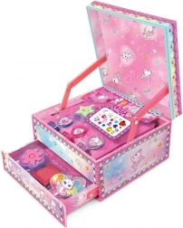Descoperă distracția ștampilării cu adorabilul motiv al pisicii balerine. Cutia-stil casetă elegantă se glisează automat la deschiderea capacului, astfel încât totul este la îndemână și se strânge ușor. Perfectă pentru creații acasă sau în călătorii.
