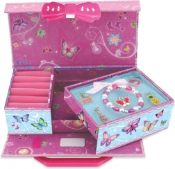 Drăgălașa cutie de bijuterii Pecoware cu motiv de fluturi va încânta orice mică domnișoară. Are un sistem practic de închidere cu lacăt cu cifru, iar în pachet găsiți un brățară și 5 pandantive tip charms pentru decorare personalizată.