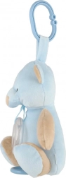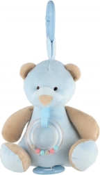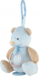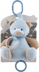 Acest ursuleț din pluș, moale și catifelat, în nuanță delicată de albastru, este companionul ideal pentru nou-născuți și bebeluși. Datorită clemei de agățare, îl puteți fixa ușor de cărucior, scaun auto sau pătuț, astfel încât să însoțească bebelușul pretutindeni. Inelul transparent zornăitor, cu mărgele colorate, oferă o stimulare auditivă blândă, care captează atenția și liniștește copiii.
