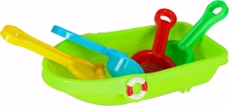 Cu acest set, copiii pot construi castele pe plajă sau se pot juca în nisip cu ajutorul formelor și uneltelor.
