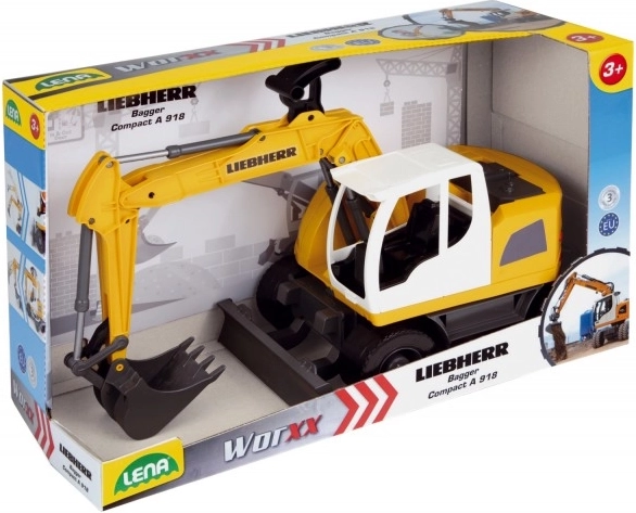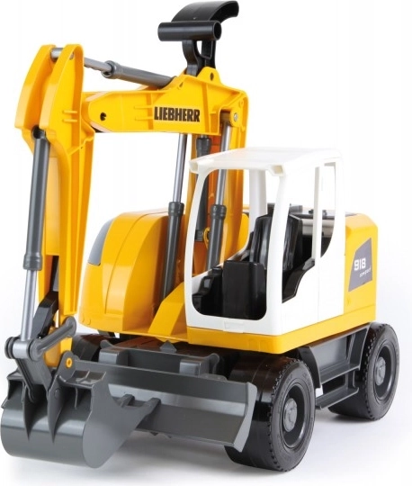 Descoperiți excavatorul robust pentru copii, inspirat de utilajele reale LIEBHERR. Suprastructura rotativă 360° cu posibilitate de blocare permite mutarea fluidă a materialului, în timp ce brațul telescopic ajunge până la 55 cm. Lama de împingere și construcția durabilă din plastic de calitate garantează o durată de viață lungă și multă distracție acasă și în aer liber.