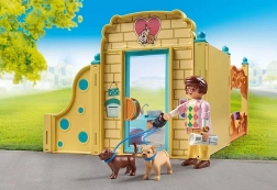 PLAYMOBIL Casa pentru căței aduce copiilor o lume plină de grijă tandră și distracție. Lăsați micii îngrijitori să descopere rutina zilnică alături de cățeluși: îi vor spăla în colțul de spălat, îi vor hrăni din boluri, îi vor cântări și îi vor așeza în culcușurile pufoase. Datorită lesei duble, vor pleca în plimbări vesele cu doi căței deodată.