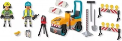 Construiește-ți propriul șantier cu PLAYMOBIL ACTION HEROES! Acest set de construcție include un compactor rutier cu role rotative, 2 figurine muncitori și accesorii bogate pentru un joc realist. Barieri rutiere cu lumini intermitente, scaun reglabil pentru șofer și unelte detaliate dezvoltă motricitatea, creativitatea și imaginația copiilor cu vârsta între 4–10 ani.