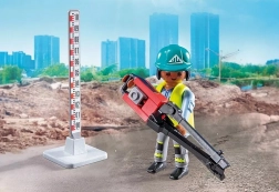 Include 2 muncitori cu căști, stație radio, mătură, lopată, trepied de măsurare și alte unelte pentru scenarii nelimitate și dezvoltarea creativității.