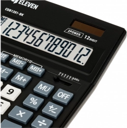 Acest calculator ELEVEN de culoare neagră combină un display clar cu 12 cifre cu siguranța alimentării duale, funcționând fiabil atât la lumina zilei, cât și fără aceasta. Cifrele mari și lizibile și dispunerea comodă a tastelor accelerează calculele zilnice la birou, la școală și acasă.