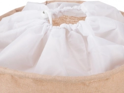 Capacul integrat, cu șnur de strângere și opritor, securizează rapid conținutul, astfel încât nimic nu se varsă, iar rufele și jucăriile rămân ferite privirilor.