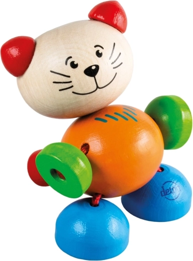 Jucăria adorabilă din lemn DETOA în formă de pisicuță încântă încă de la 8 luni. Datorită elementelor înșirate pe elastic, piesele se mișcă, se rotesc și se îndoaie, susținând excelent motricitatea fină și percepția senzorială. Fabricată din lemn de calitate în Republica Cehă, sigură pentru sănătate și conformă cu normele UE privind siguranța jucăriilor.