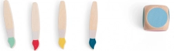Îmbogățiți joaca copiilor cu Pexeso de pictură. Plasați pensulele în găurile din paletă, aruncați zarul și căutați pensula colorată care corespunde culorii pe zar. Dacă găsiți pensula corectă, o obțineți și aruncați din nou. Dacă nu, puneți pensula la loc. Acest joc sprijină motricitatea fină și memoria copiilor.