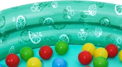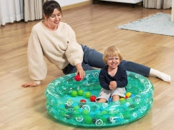 În pachet sunt 50 de bile colorate, astfel încât puteți transforma ușor piscina într-un loc de joacă uscat pentru distracție pe tot parcursul anului. Valvele de siguranță ajută la menținerea aerului în interior, iar inelul dublu oferă sprijin stabil pentru ședere și joacă.