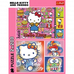Puzzle 2x200 Hello Kitty și prietenii oferă două imagini într-un set, fiecare cu 200 de piese, care vor oferi ore de distracție pentru copii și adulți. Acest set de puzzle reprezintă colaje colorate inspirate de îndrăgitul desen animat Hello Kitty, care odată asamblate ating dimensiunile de 410x275 mm.