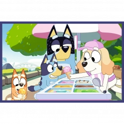 Vesela Bluey sunt puzzle-uri care ilustrează personaje din desenul animat Bluey. Fiecare puzzle formează o imagine cu dimensiunile de 275x180 mm.