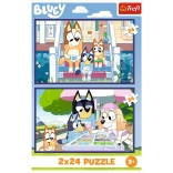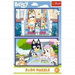 Puzzle 2x24 Vesela Bluey oferă două puzzle-uri de câte 24 de piese într-un singur pachet! Datorită acestui fapt, asamblarea este și mai interesantă și permite participarea mai multor copii.