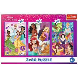 Puzzle 3x80 Disney Prințese Prietene conține trei diferite puzzle cu teme ale prințeselor Disney. Acest pachet oferă divertisment pentru mai mulți copii, deoarece oferă trei puzzle cu câte 80 de piese.