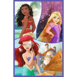 Aceste puzzle oferă trei scenarii complet diferite cu prințesele Disney îndrăgite, ceea ce îmbogățește experiența asamblării.