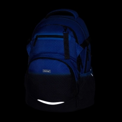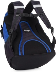 Compartimentarea bine gândită, cu două compartimente spațioase, găzduiește toate necesarele pentru școală. Buzunarele laterale elastice sunt ideale pentru sticla cu apă, iar buzunărelul frontal păstrează în siguranță o gustare sau mărunțișuri. Baza rigidă asigură stabilitatea rucsacului când stă singur, iar elementele reflectorizante sporesc vizibilitatea copilului pe înserat și pe întuneric.