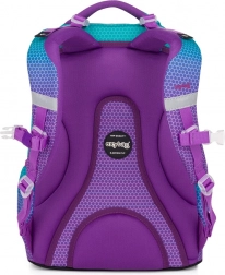 Rucsacul școlar Oxy Ombre Blue Pink atrage prin designul modern ombré ce combină turcoazul și movul cu un model hexagonal. Datorită panoului dorsal anatomic și bretelelor căptușite, reglabile, oferă confort pe tot parcursul zilei chiar și la încărcare completă. Baza solidă permite poziționarea stabilă și protejează conținutul.