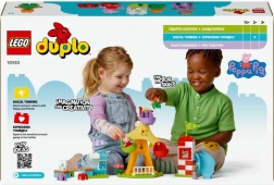 Setul LEGO DUPLO Peppa Pig – parcul de distracții îi poartă pe copii în lumea serialului îndrăgit. Este ideal pentru primii pași în construcție: cei mici pot așeza personajele în gondole și pot învârti roata panoramică, se pot da pe tobogan sau se pot juca la chioșcul cu sucuri. Prin joc, își exersează coordonarea mână–ochi și descoperă emoțiile asociate noilor experiențe.