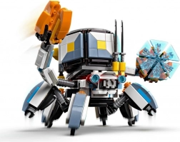 Construiește și aranjează două bestii mecanice detaliate: Crabtank cu membre articulate, clești care se deschid, capsulă detașabilă și scut energetic, și Sawtooth cu fălci mobile, trunchi rotativ și gât, cap și picioare flexibile. Scena de joc este completată de iarbă înaltă, un foc de tabără și un cufăr cu comori pentru povești creative.