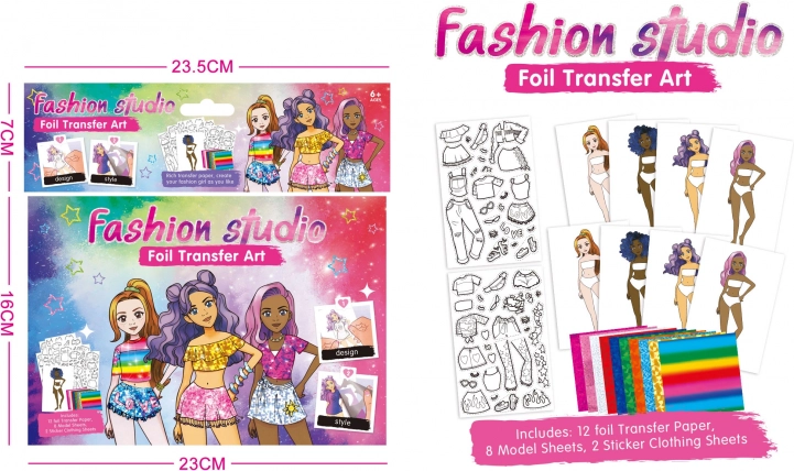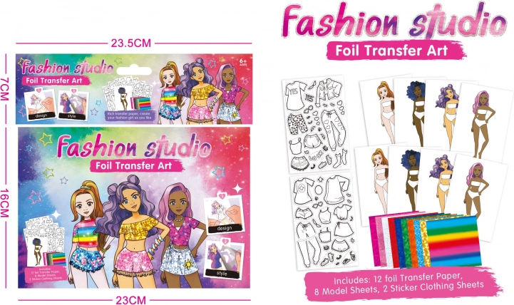 Descoperiți-vă creativitatea cu portofoliul de design vestimentar care conține 8 modele, 2 foi de șabloane de îmbrăcăminte și 12 folii colorate autocolante.