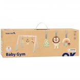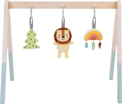 Baby gym-ul TOOKY TOY este conceput pentru a sprijini blând simțurile nou-născuților și sugarilor. Cele trei jucării suspendate motivează bebelușul să se întindă și să apuce, consolidând natural coordonarea și îndemânarea. Sunetele discrete de zornăit, foșnet și piuit susțin percepția și capacitatea de concentrare.