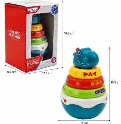 Oferiți copilului dvs. o experiență minunată cu jucăria Woopie Dino grămadă, care combină dezvoltarea senzorială cu abilitățile manuale. Această jucărie colorată este concepută pentru a sprijini dezvoltarea naturală a echilibrului și sensibilității la atingere prin posibilitatea de a construi elemente în forme diverse. Copilul dvs. se va bucura să asambleze până la 6 elemente diferite, ceea ce ajută la dezvoltarea abilităților motorii fine și a simțului echilibrului.