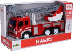 Mașina de pompieri realistă cu mecanism cu inerție îi va încânta pe toți micii salvatori. Oferă efecte luminoase și sonore, butoane funcționale pe cabină și scară extensibilă. Bateriile sunt incluse, astfel încât este gata de acțiune imediat după despachetare.