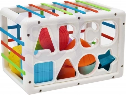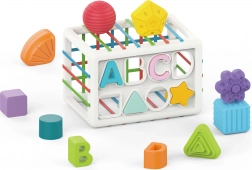 Una dintre fețele cubului este un sortator clasic cu decupaje pentru forme și litere. Copiii învață într-un mod distractiv să recunoască formele, culorile și primele litere.