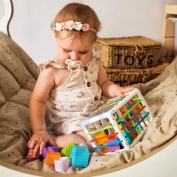 Fiecare piesă diferă prin textură, culoare și formă, astfel încât jocul este de fiecare dată diferit și motivant. Pe măsură ce copilul crește, cubul va fi util și pentru învățarea culorilor, formelor și primelor litere – un instrument ideal pentru pregătirea preșcolară timpurie.