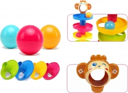 Acest turn spiralat este modalitatea perfectă de a distra copilul dumneavoastră de la vârsta de șase luni. Cu mingi colorate, ușor de prins, și datorită sunetelor lor zdrăngănitoare, această jucărie stimulează sensorial. Setul include 6 piese ușor de asamblat, pe care copilul dumneavoastră le poate uni după bunul plac, dezvoltând astfel abilități motorii.
