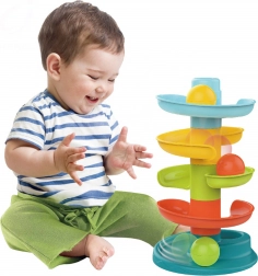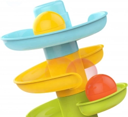 Pista pentru bile de la brandul Woopie este un turn spiralat distractiv care asigură distracție nesfârșită. Este formată din 5 părți colorate pe care copiii le pot asambla cu ușurință și 3 bile ușoare, ușor de prins, care emit sunet.