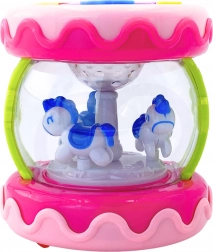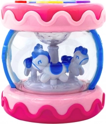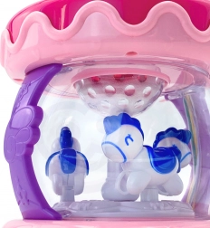 Partea interioară a jucăriei conține un carusel cu căluți care se rotesc atunci când sunetele sunt activate, oferind distracție și stimulare vizuală.
