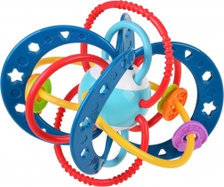 Buclele flexibile se prind ușor, iar elementele colorate pot fi deplasate, susținând prinderea, manipularea și coordonarea mână–ochi.