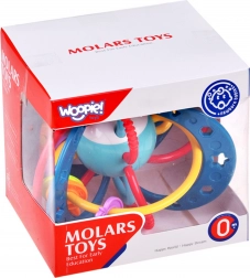 Această jucărie senzorială ușoară și ușor de prins de la WOOPIE este concepută pentru explorare în siguranță. Bucle moi și elastice se țin plăcut de mânuțele mici și servesc totodată ca suzetă blândă pentru dentiție în timpul erupției dinților. În interior, o biluță zornăitoare oferă stimulare auditivă și încurajează copilul la joacă activă.