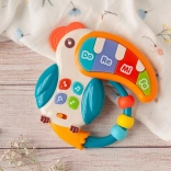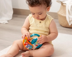 Patru clape colorate redau tonuri și melodii scurte, care sprijină ritmul, percepția auditivă și primii pași muzicali.