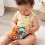 Mărgelele mobile și mânerul se potrivesc perfect în mâna copilului. Glisarea și scuturarea dezvoltă priza, coordonarea și concentrarea.